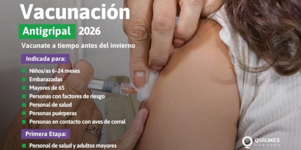 El Municipio de Quilmes informa que a partir de hoy, miércoles 11 de marzo, comienza la campaña de vacunación antigripal 2026. La vacuna es gratuita, segura, no requiere orden médica y puede aplicarse junto a otras cómo la del COVID,…