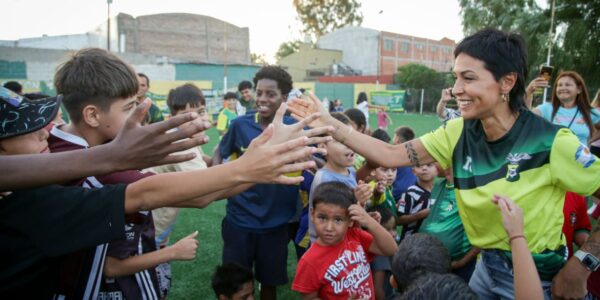 Mayra Mendoza y Eva Mieri inauguraron la cancha de cesped sintético del club San Pablo
